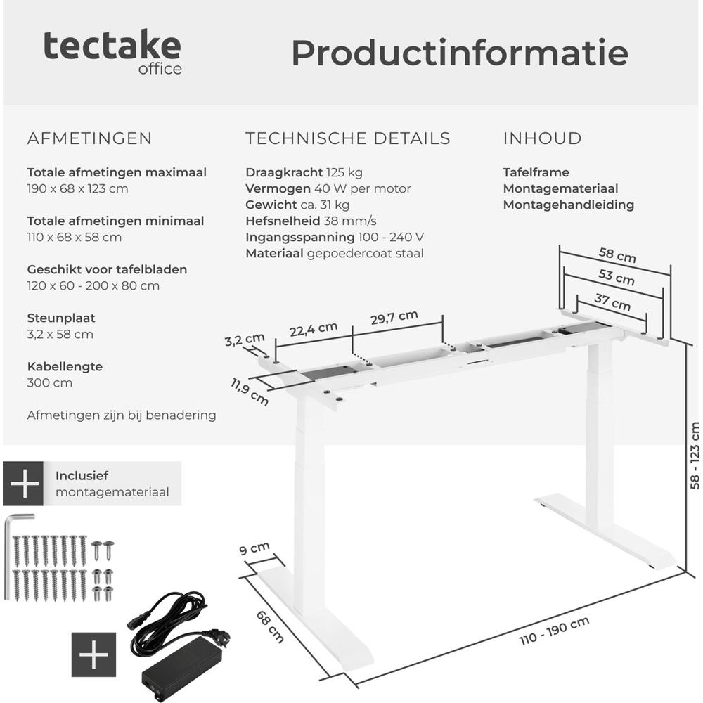 120×60 Bayt elektrisch hoog laag verstelbaar bureau wit kopen, ja of nee