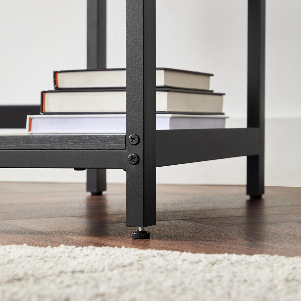Bij het testen van dit bureau valt de opslagruimte direct op als een waar pluspunt. De drie ruime legplanken bieden een verrassende hoeveelheid ruimte, voldoende voor al mijn kantoorbenodigdheden en persoonlijke prularia.