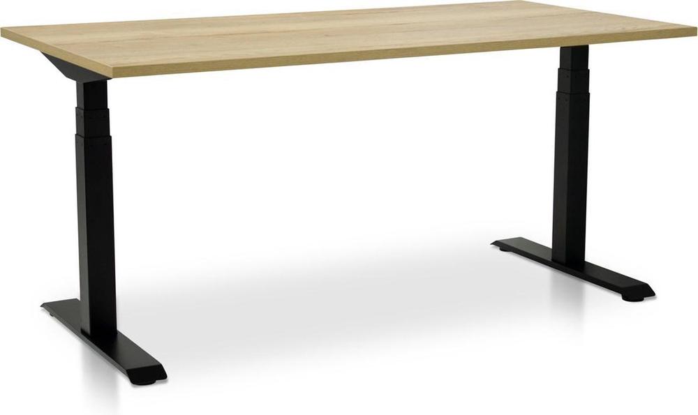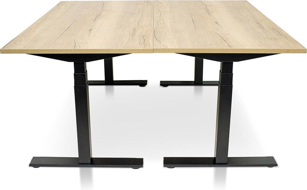 Het tafelblad is uitgevoerd in spaanplaat met een melaminecoating die de look en feel geeft van echt hout, zonder het gewicht of de bankbrekende prijs.