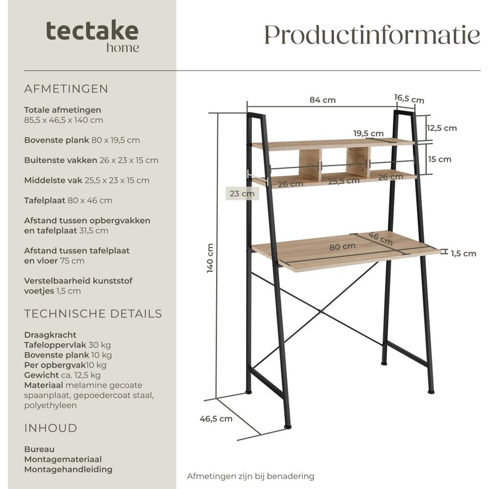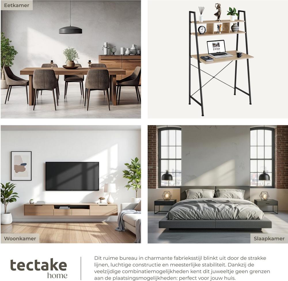 120×55×90 cm tectake® bureau met opbergtas en lichtbruin houten blad en zwart metalen frame kopen, ja of nee?