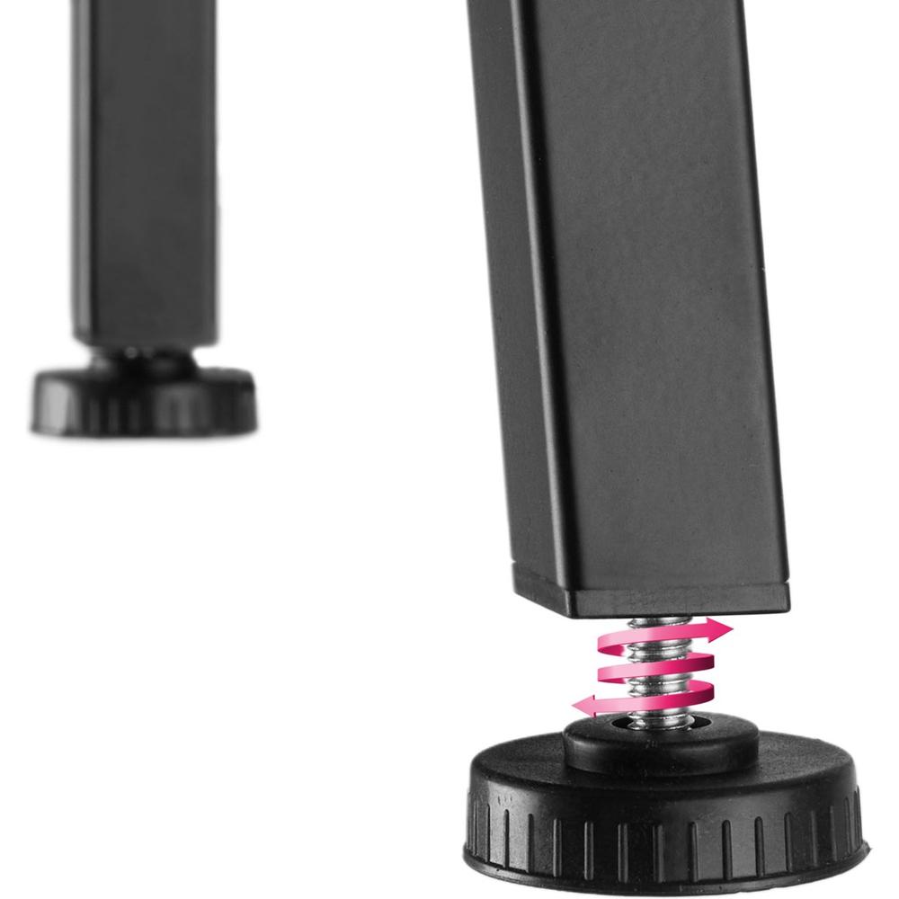 Alhoewel de kunststof pootjes eerst wat goedkoop aandoen, laten deze zich verrassend stevig en functioneel aanpassen aan ongelijke vloeren.