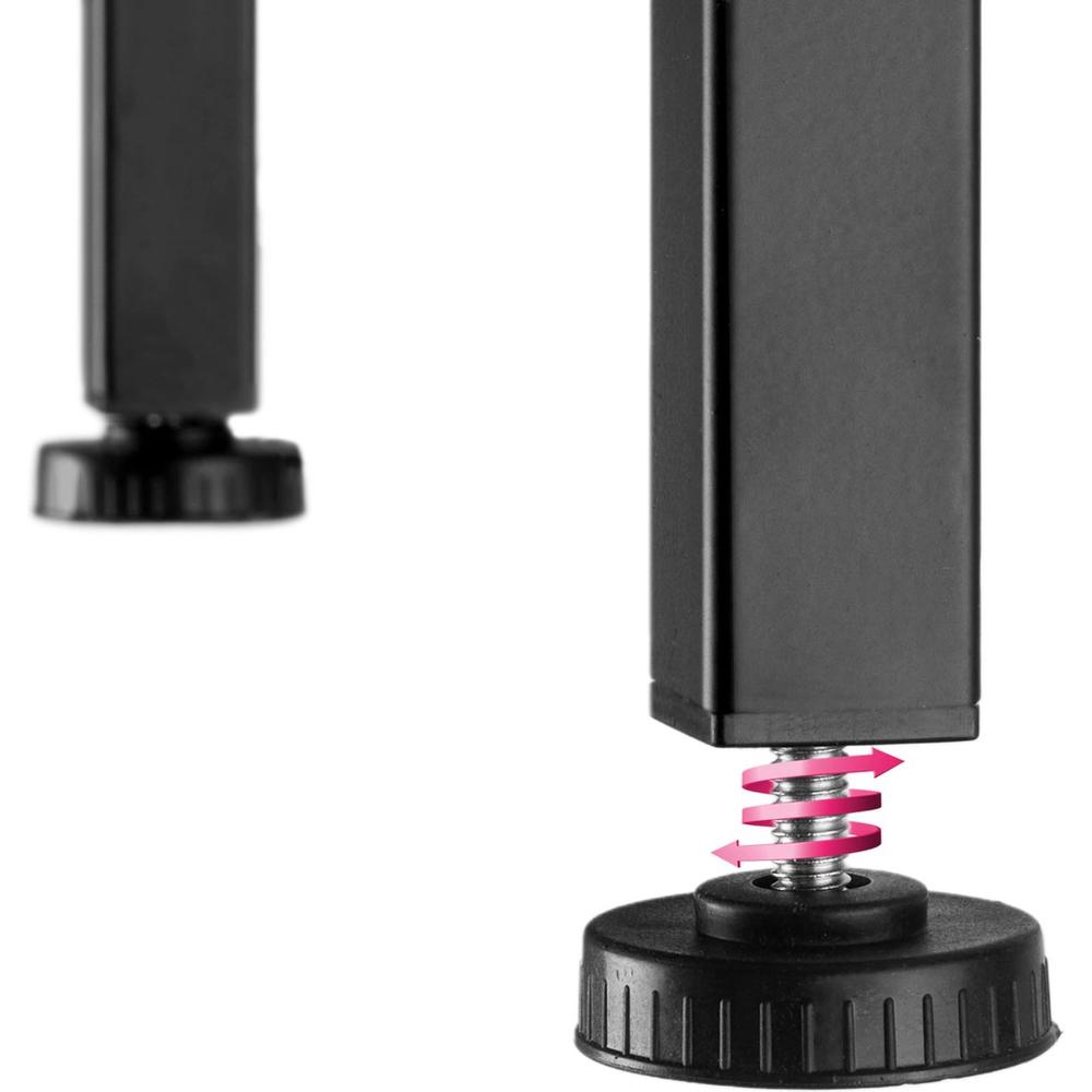 Dit vak bespaart niet alleen vloeroppervlak maar houdt alles netjes en toegankelijk. En dan die in hoogte verstelbare kunststof pootjes; ze zorgen ervoor dat zelfs de meest scheve vloeren geen uitdaging zijn voor een stabiele opstelling.