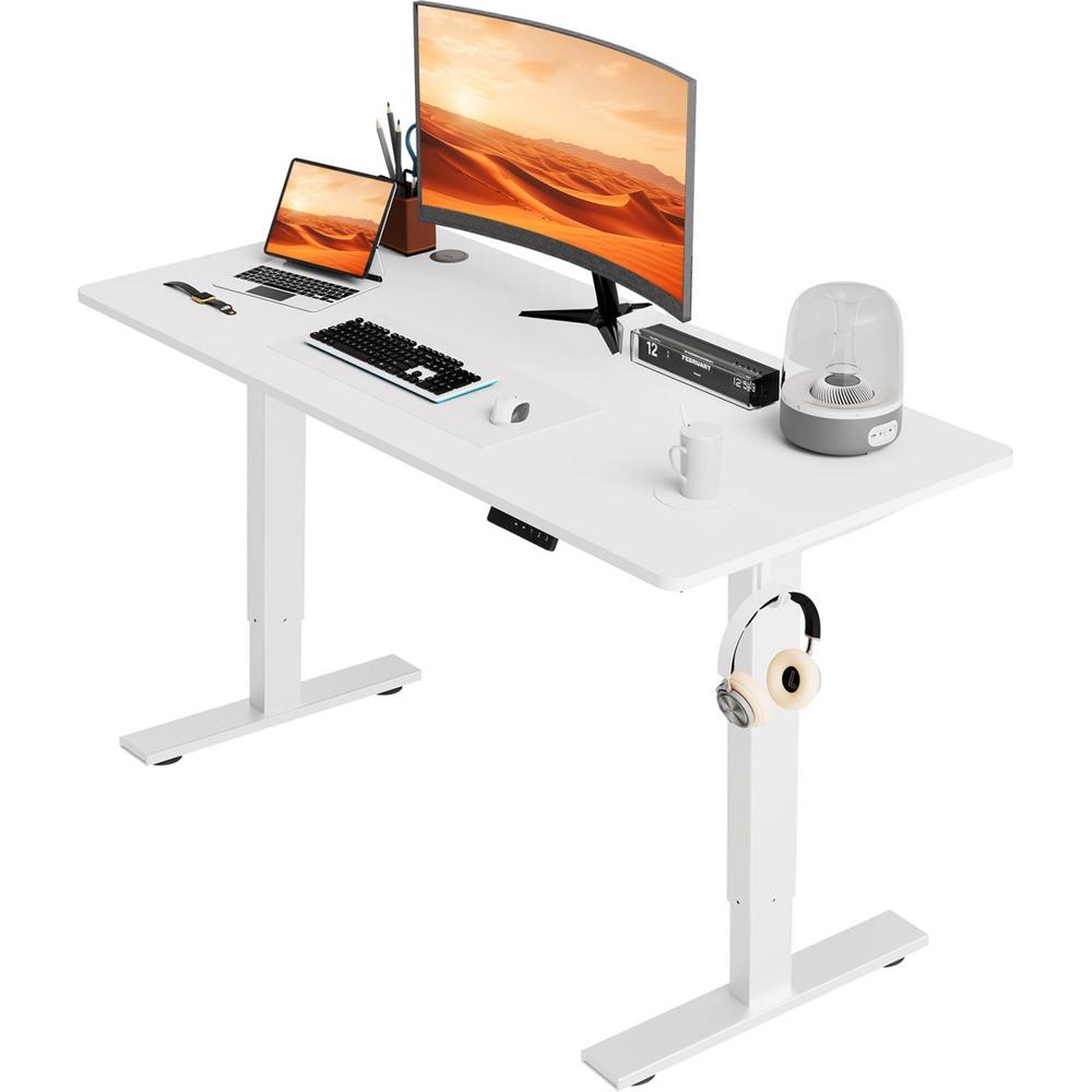 Het bureau biedt genoeg ruimte voor een toetsenbord en twee beeldschermen of een flinke stapel schoolboeken. Dit betekent dat het perfect is voor jonge studenten die al hun schoolspullen binnen handbereik willen houden, zonder dat het chaotisch aanvoelt.