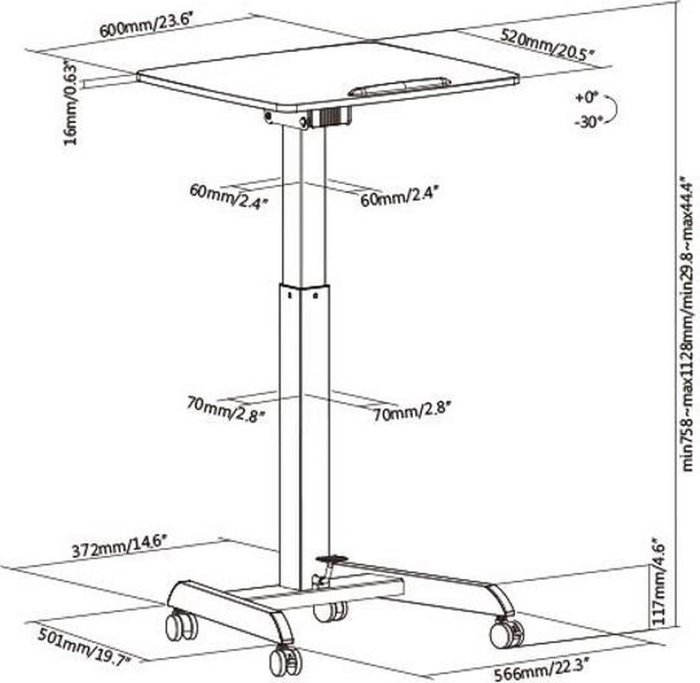 60×53 VDD Gaming katheder lessenaar bureau laptop tafel zit sta bureau verrijdbaar workstation laptop standaard laptoptafel bijzet tafel op wielen wit in hoogte verstelbaar maximale hoogte 113 cm bureaublad kopen, ja of nee