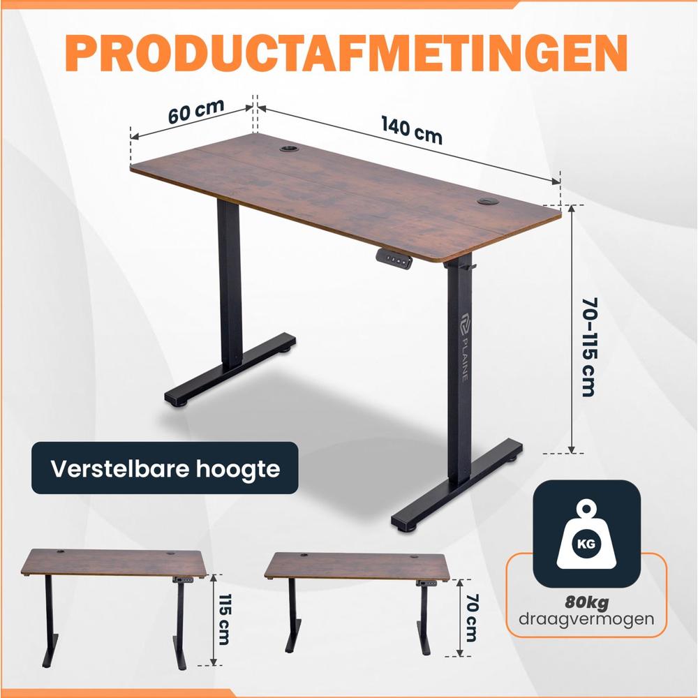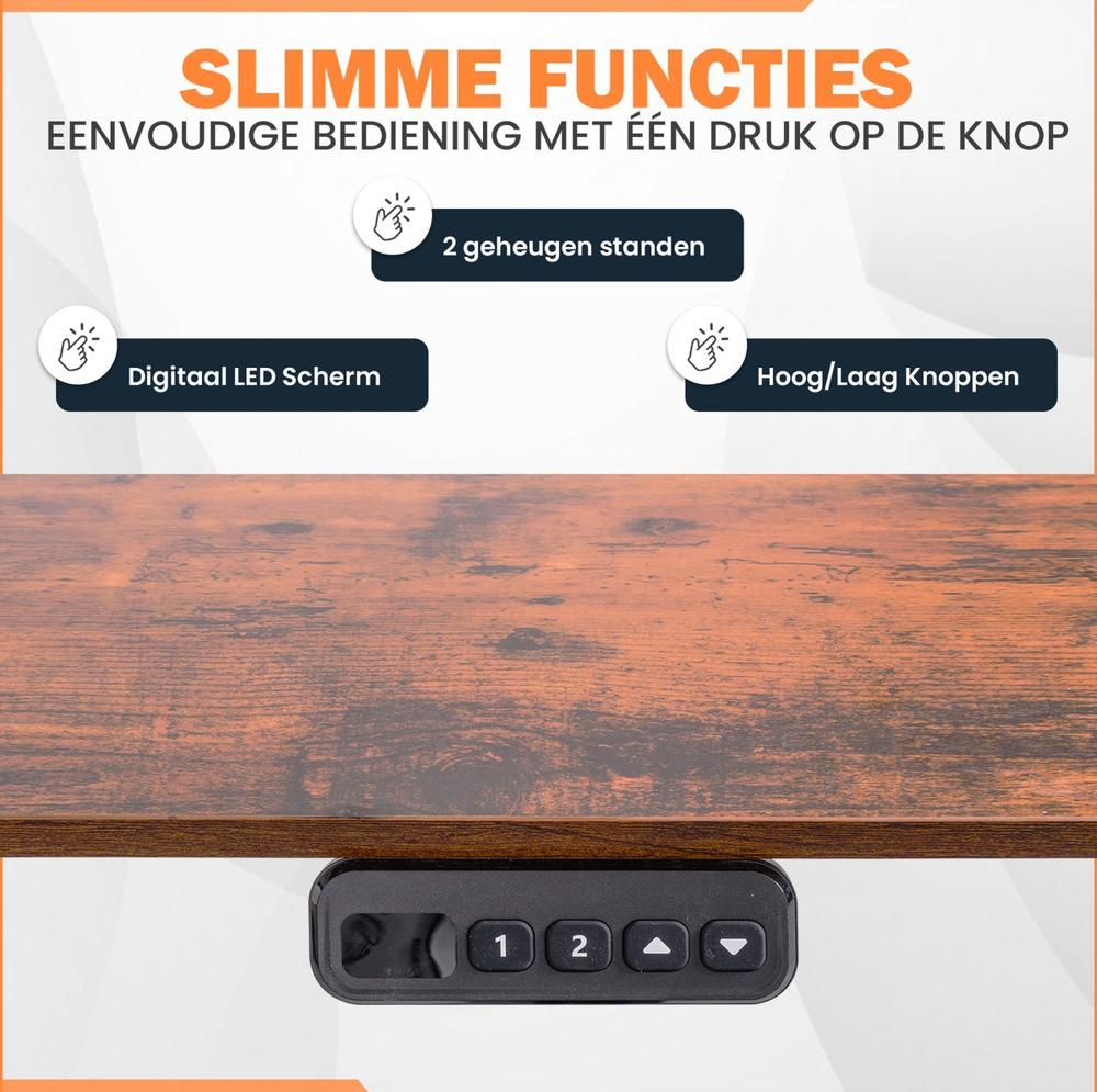 140×60 Zit Sta Bureau elektrisch verstelbaar rustic bruin incl kabelgoot kopen, wat zeggen wij